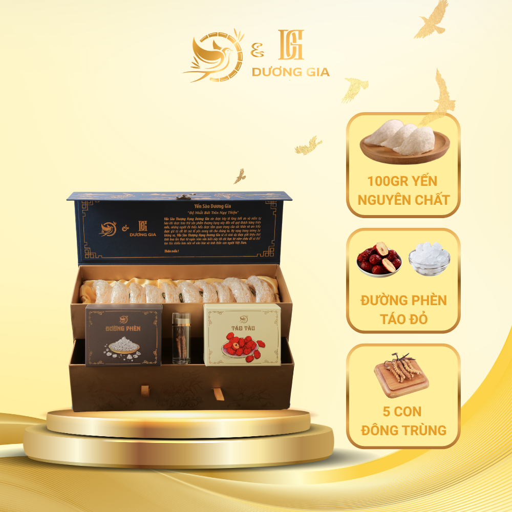 💎 Vương Đan – Tinh hoa yến sào thượng hạng, được chế biến công phu từ 100g yến sào tinh chế cao cấp (gồm 10 tổ yến tuyển chọn, táo đỏ và đường phèn). Không chỉ là sản phẩm bổ dưỡng vượt trội, Vương Đan còn mang trong mình sự sang trọng, quyền quý, xứng đáng là món quà tặng đẳng cấp dành cho những người đặc biệt nhất.